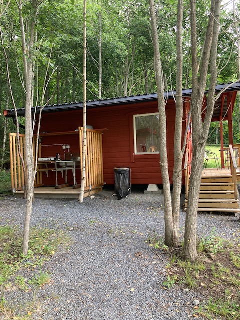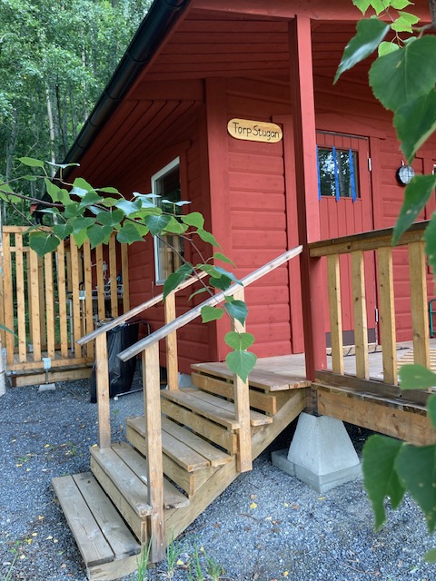Välkommen att laga din mat i vårt enkla men trevliga ute-kök. Här finns diskbänk med rinnande vatten, el-platta och vattenkokare. Kontakt för att ladda din mobiltelefon eller annan el-utrustning finns också här.